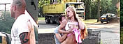 A threesome at a gas station! In the middle of a day, in front of hundreds of cars. 2 guys and a girl are visibly nerves but are not stopping anyway :)